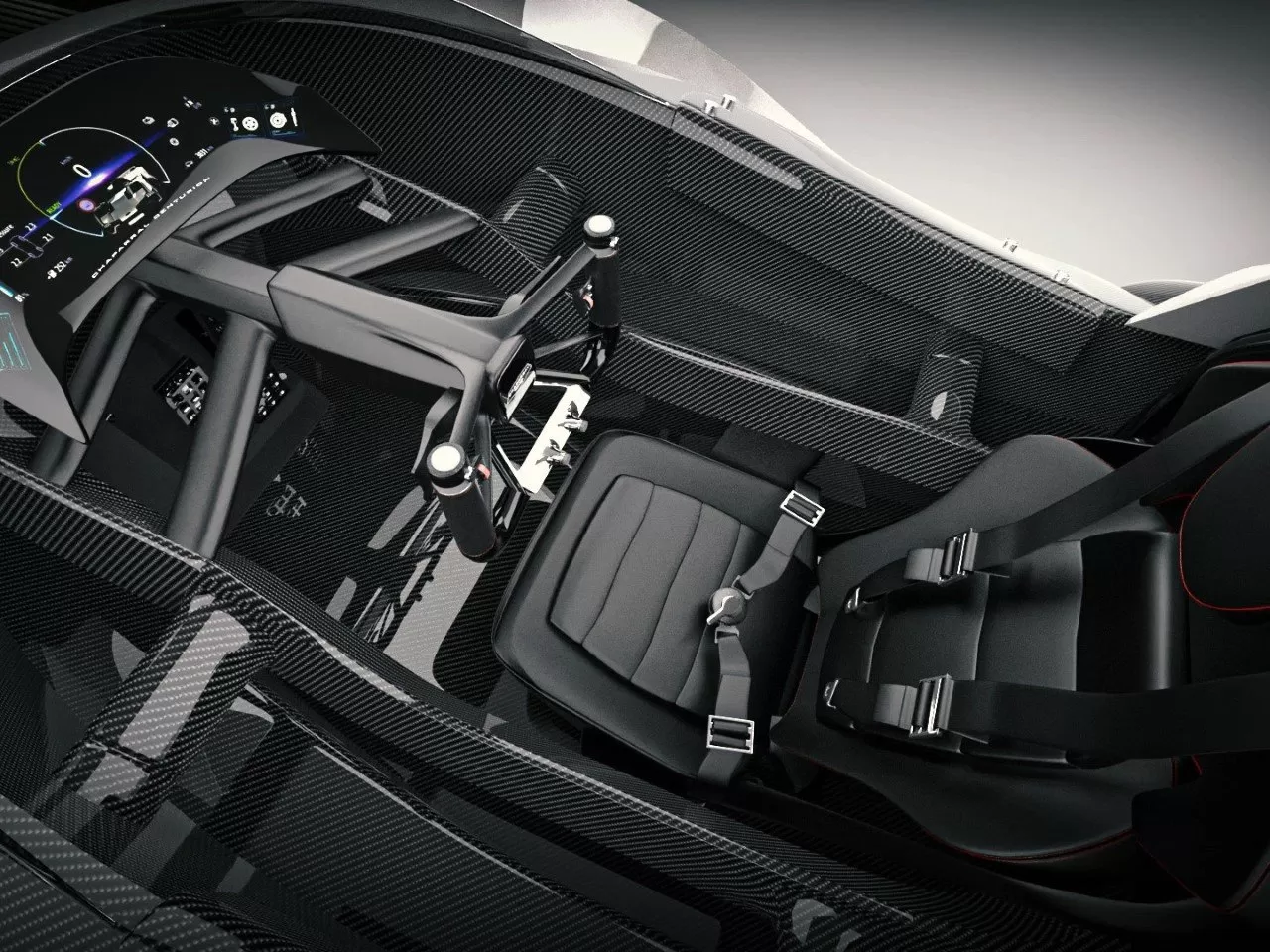 The front fascia appears designed to consume the air ahead, hinting at powerful airflow management. While carrying the spirit of past Chaparral ground effects cars like the “sucker car” 2J through its low profile and exaggerated skirts, the Centurion evolves this with a modern, single-seater layout and an unapologetically aggressive posture. It leans more towards the extreme end of hypercar design than a traditional closed-wheel prototype racer.