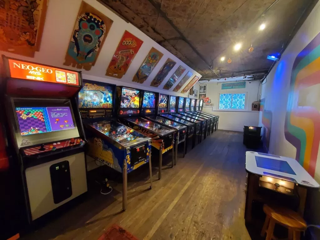 - It features a curated collection of vintage pinball and arcade cabinets, many with local history.