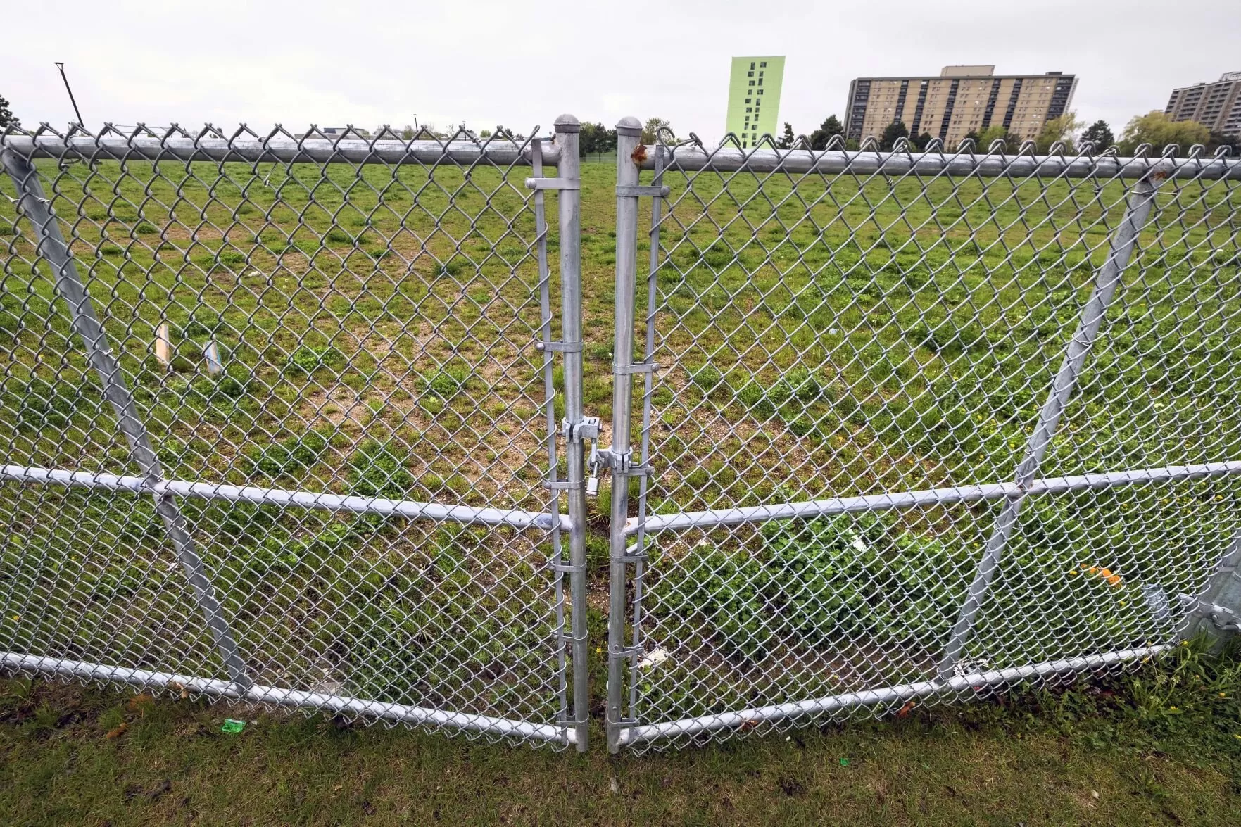 Vacant, fenced-in land at the former Firgrove public housing site in Toronto, awaiting redevelopment.