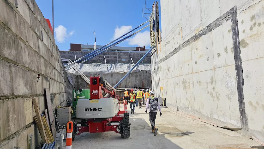 At Great Northern Way–Emily Carr Station, significant progress is visible in the two underground levels, which will house the 80-meter platforms, ventilation systems, and areas for stairs, escalators, and elevators, as well as the concourse. Construction is also underway on the street-level entrance buildings.