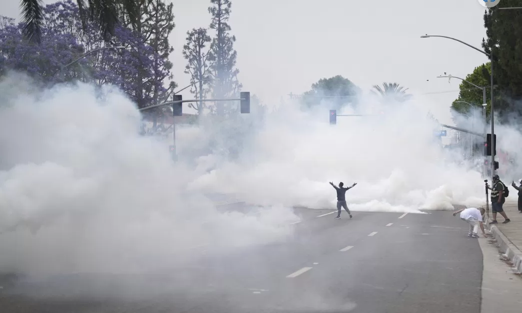 Samedi, les manifestants ont affronté des agents fédéraux qui mettaient en place une zone de rassemblement près d’un Home Depot à Paramount. Les manifestants ont tenté de bloquer des véhicules fédéraux, certains lançant des pierres et des morceaux de ciment. En réponse, des agents en équipement anti-émeute ont utilisé des gaz lacrymogènes, des grenades assourdissantes et des balles de poivre. Un dirigeant syndical a également été arrêté lors des manifestations et accusé d’avoir entravé le travail des forces de l’ordre.