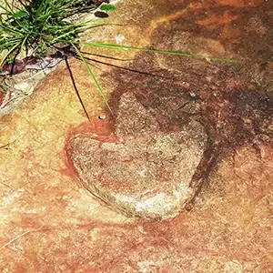Longue piste d'empreintes laissées par un ornithopode végétarien dans des dépôts fluviaux anciens au Brésil.