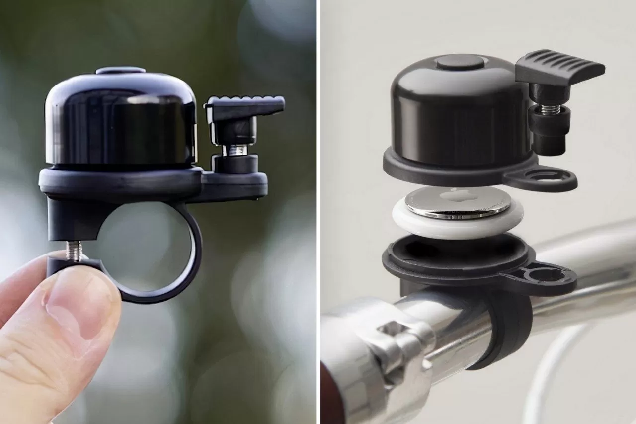 Petite sonnette de vélo avec un compartiment caché pour contenir un Apple AirTag