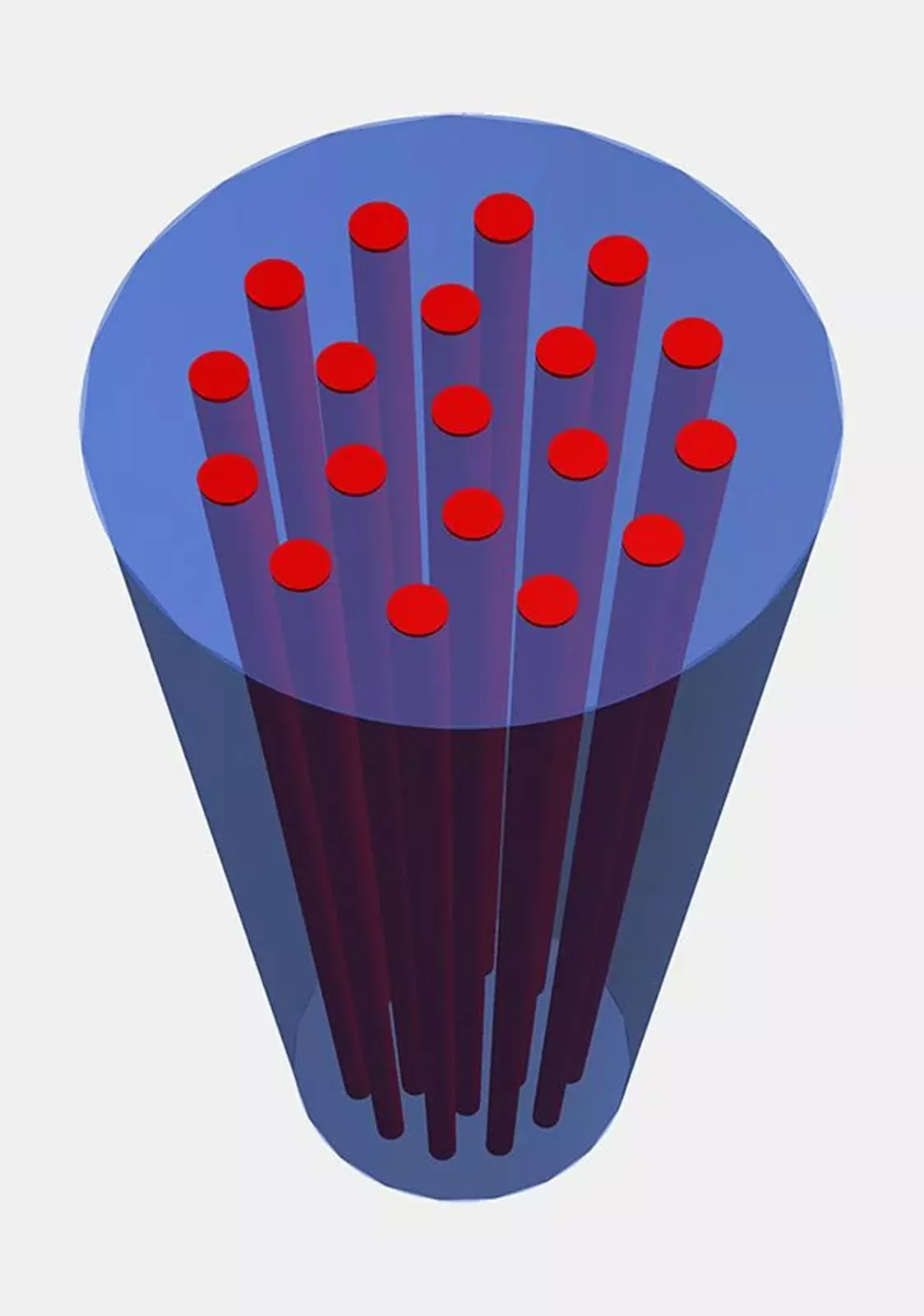 Image conceptuelle illustrant la structure de la nouvelle fibre optique à 19 cœurs