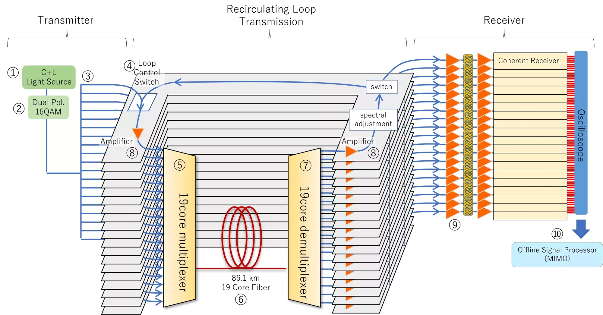 Pour prouver que cette fibre pouvait gérer de longues distances, les chercheurs ont mis en place une expérience complexe. Ils ont envoyé des signaux à travers une longueur de 86,1 kilomètres de fibre 21 fois, créant une boucle qui simulait un trajet total de 1 808 kilomètres. C’est à peu près la distance entre Berlin et Naples ou à travers le Japon, de Sapporo à Fukuoka – un parcours sérieusement long pour les données !
