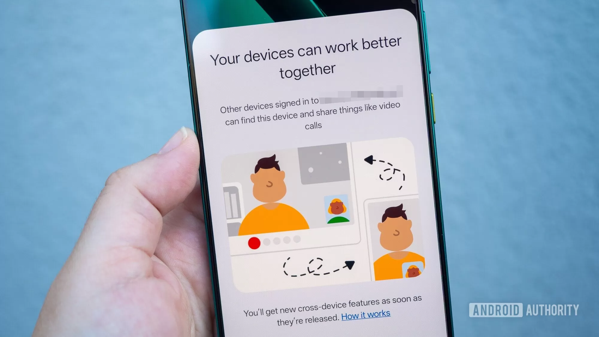Le grand changement est que lorsque vous activez un tout nouveau téléphone Android et vous connectez avec votre compte Google, les services multi-appareils sont maintenant activés automatiquement. Vous pourriez même recevoir une notification sur vos autres appareils Android (comme votre téléphone principal ou votre tablette) vous informant que le nouvel appareil peut désormais partager des éléments comme les appels vidéo.