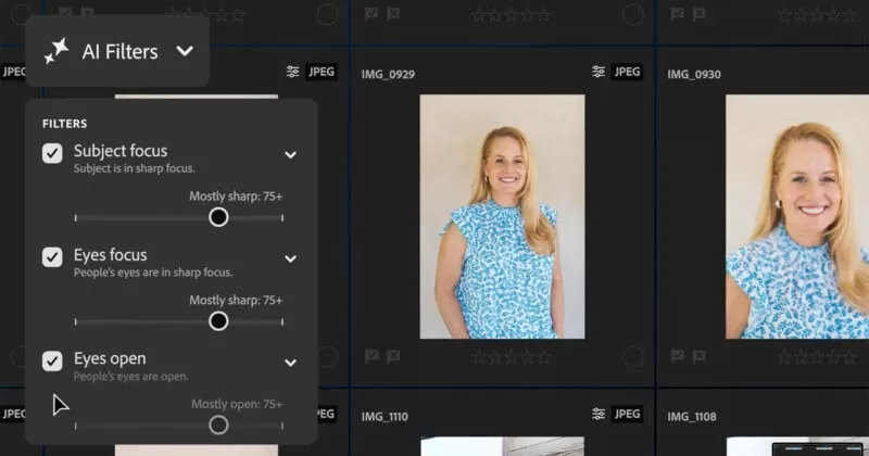 Sorting through hundreds or thousands of photos after a shoot can take hours. Adobe is teasing a major time-saving feature coming soon to Lightroom and Lightroom Classic: AI-powered filters that help you quickly identify your best images. Imagine filters like “subject focus,” “eyes focus,” and even “eyes open” detection.