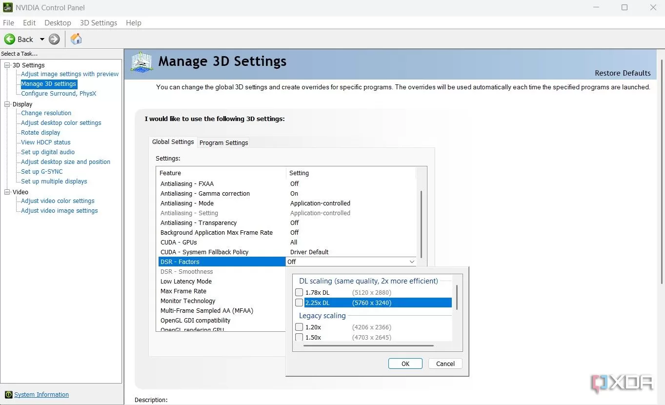 Nvidia Control Panel setting for Dynamic Super Resolution (DSR)