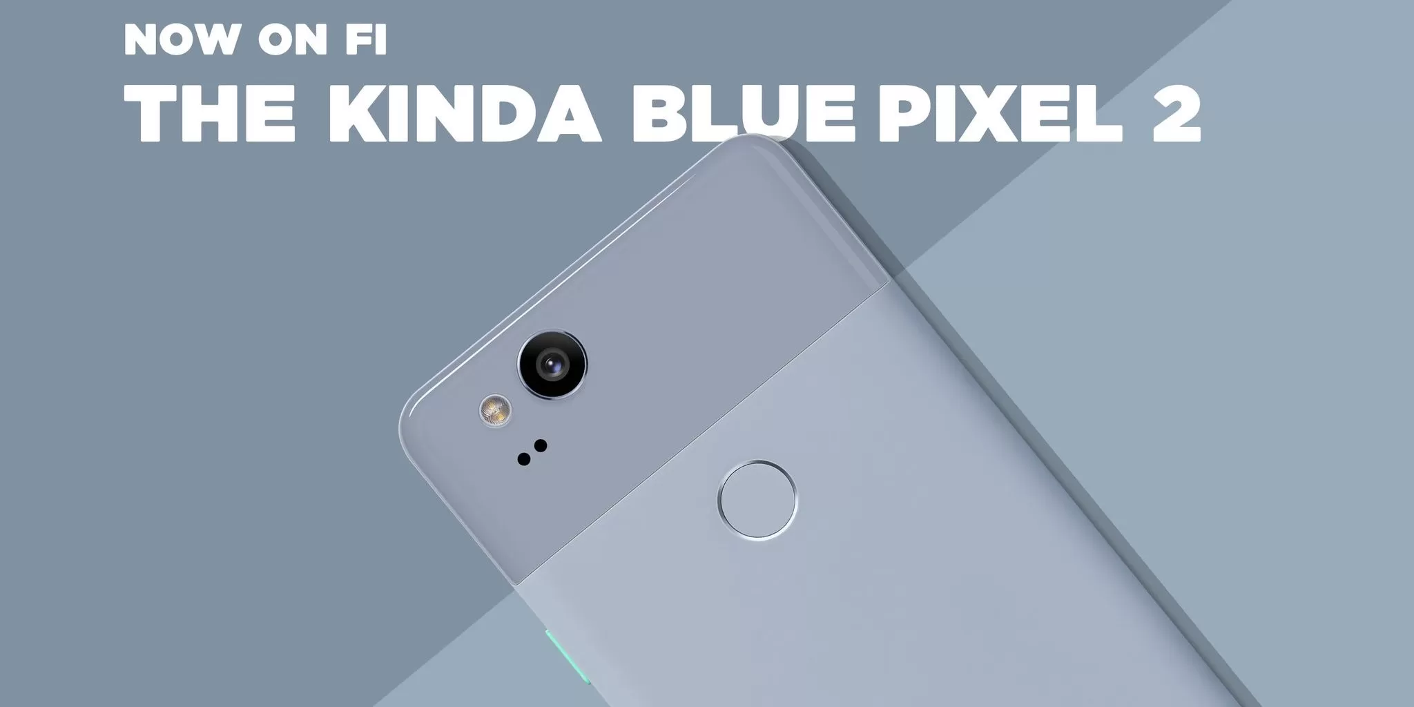 Close-up of the back of a Google Pixel 2 phone in Kinda Blue