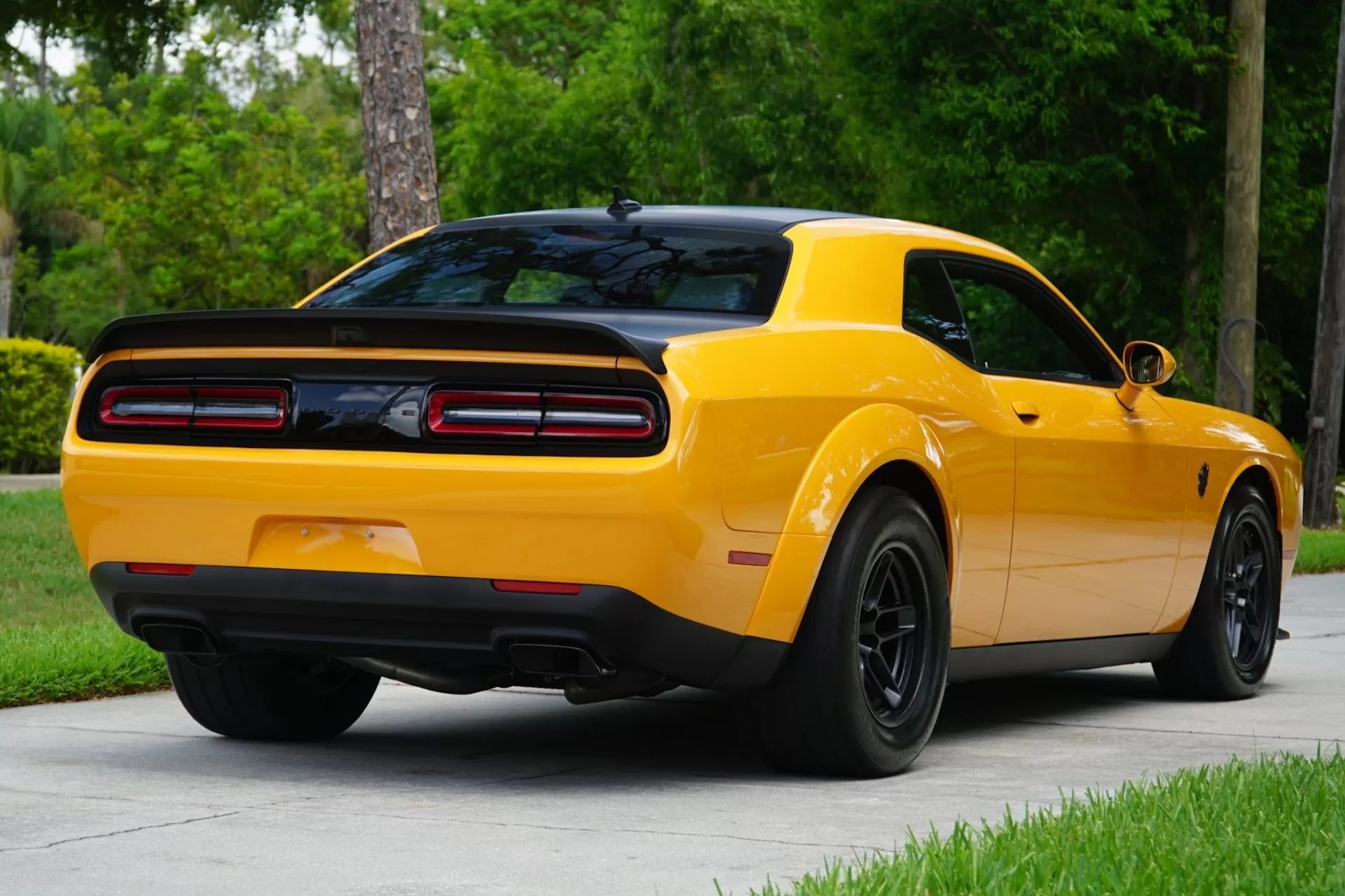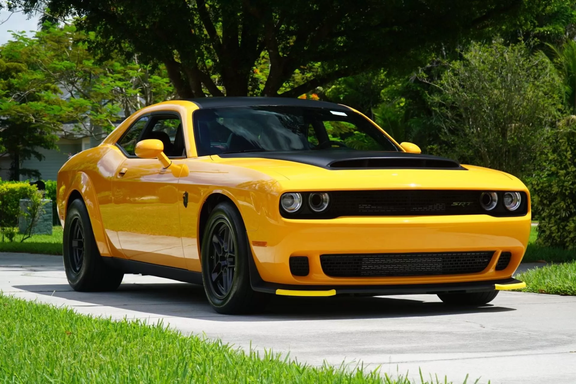 Beyond its dazzling paint, this Demon 170 is loaded with options, including the lightweight carbon-fiber two-piece wheels and extra comforts like the Premium Group and navigation. It also has an interesting backstory: it was originally purchased new by acclaimed actor and comedian, Kevin Hart. With only 24 miles on the odometer, it’s practically brand new, preserved likely as a collector’s item rather than a daily driver.