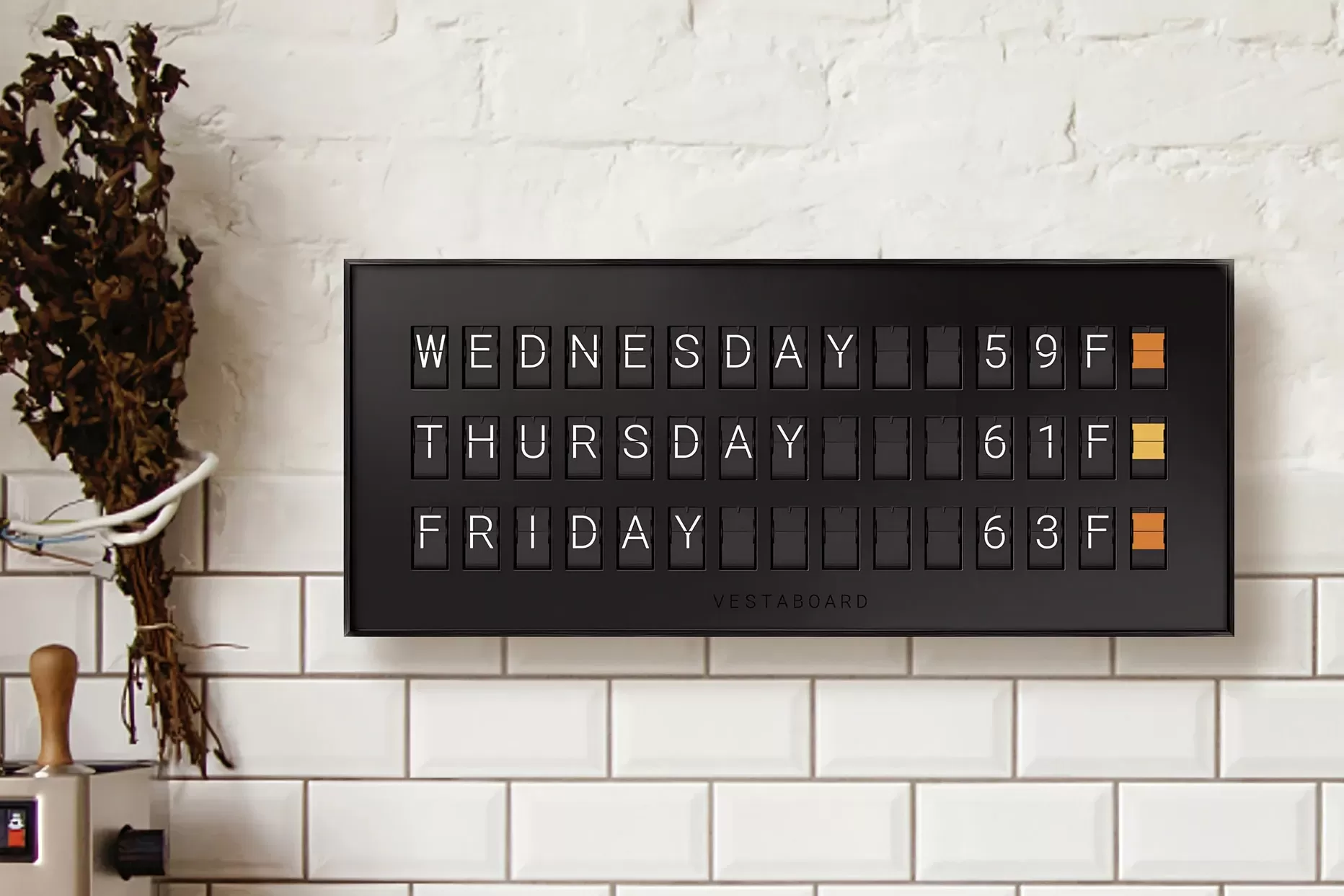 The Vestaboard Note looks great displaying practical information like a forecast in a home setting.