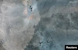 Holes left by bunker-buster bombs dropped from B-2 aircraft at the Fordow underground nuclear complex near Qom in Iran.