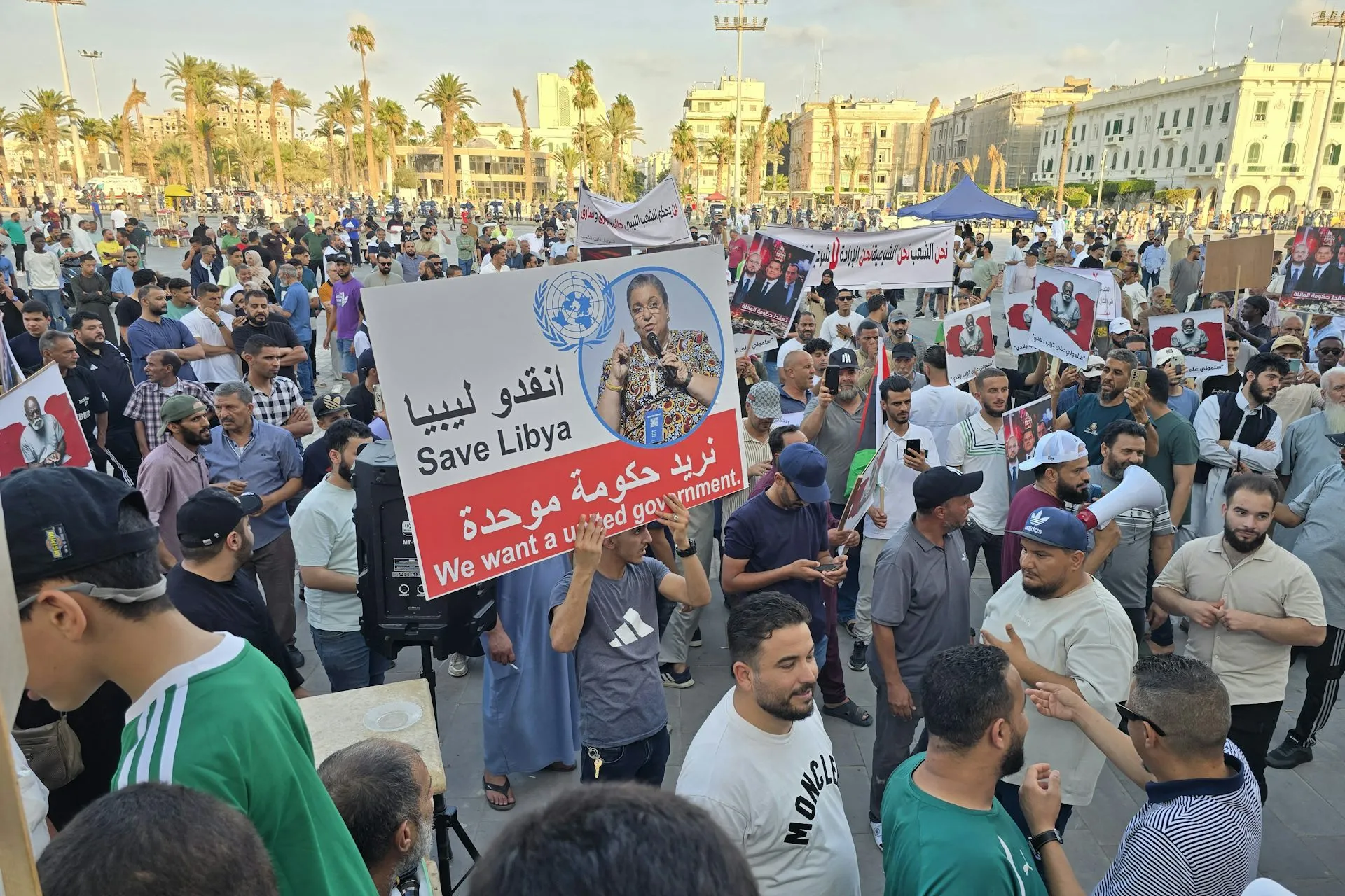 People demonstrate against the Government of National Unity in Tripoli, Libya, June 2025, protesting political instability.