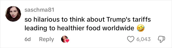 Social media comment referencing a US political figure in relation to tariffs.